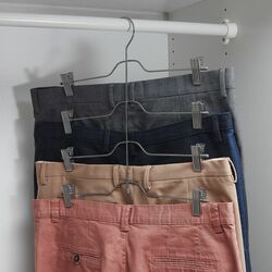 4 брюк или юбки на одной вешалке?! Да, это правда! Разумное решение для тех, у кого одежды больше, чем места - и гораздо дешевле, чем покупка нового шкафа.