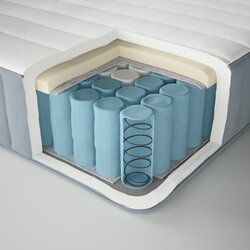 Очень жесткий матрас высотой 24 см с индивидуальными карманными пружинами. Равномерное распределение веса тела по зонам комфорта обеспечивает более мягкую поддержку бедер и плеч. Толстый слой пены добавляет комфорта.