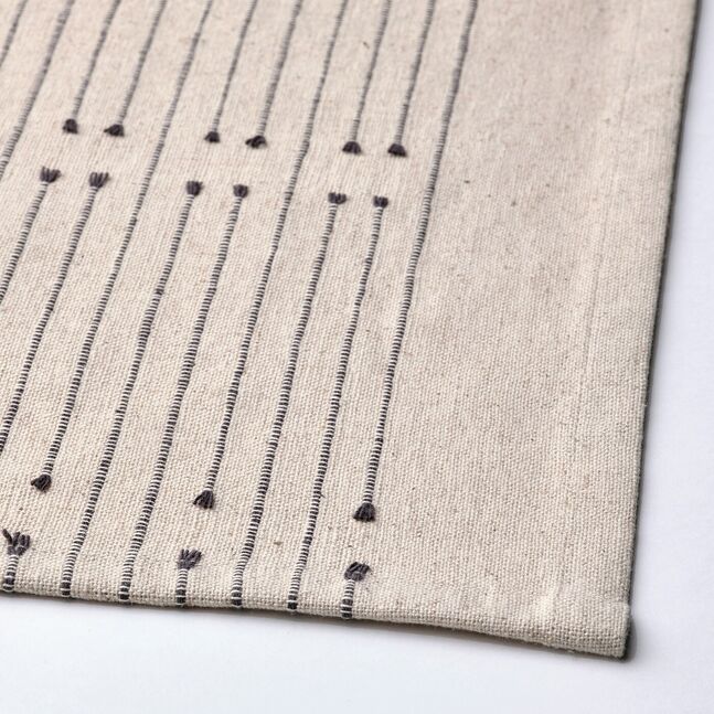 Техника, используемая для создания узора, придает столу-бегунку небольшие декоративные кисточки.