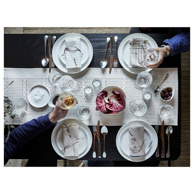 Накройте стол, используя земляные тона и неброские узоры, вдохновленные нашим шведским наследием. Столовые приборы VÅRARV из прочного хлопка и джута подходят для всех случаев жизни и выделяют вашу традиционную столовую посуду.