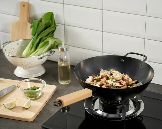 Концентрация тепла наиболее высока на самом дне, а наклонные стороны заставляют продукты падать вниз, что делает вок идеальным для быстрого обжаривания и переворачивания.