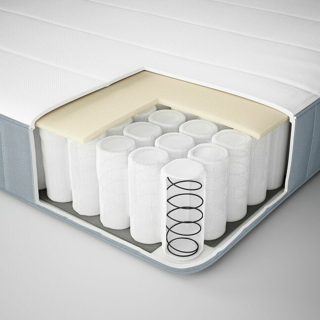 Очень жесткий матрас высотой 20 см с индивидуальными карманными пружинами и слоем пены обеспечивает комфорт и поддержку. Чехол с дополнительной пеной и мягкой тянущейся тканью добавляет еще больше комфорта.